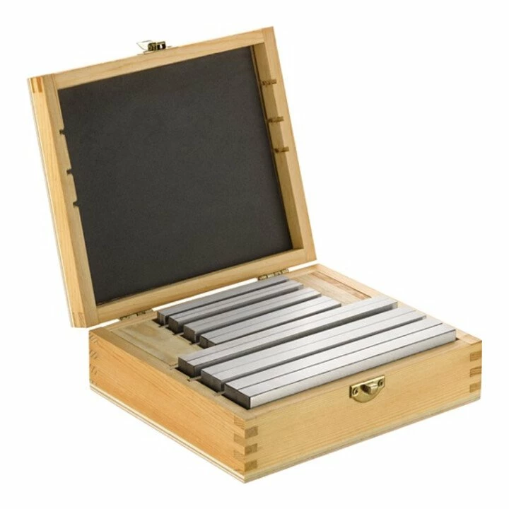 im Holzkasten · mit abnehmbarem Klappdeckel · die Parallelstücke werden als Unterlagen oder Zwischenlagen auf Werkzeugmaschinen verwendet · für Maschinenschraubstöcke oder Anreißplatten sind sie zur parallelen Auflage von Werkstücken unentbehrlich · die Parallelstücke können flach- oder hochkant verwendet werden · die große Genauigkeit ermöglicht das Aufeinanderlegen zweier Größen · Paartoleranz in Höhe tp2 und Breite tp1 nach IT5 · Nennmaße nach ISO 2768 m · Größe 2,5 – 25 mm, Inhalt je 1 Paar: Länge 63 mm: 8 x 2,5 / 10 x 3,2 / 12 x 4,0 / 16 x 5,0 / 20 x 6,3 (H x B) Länge 100 mm: 12 x 4,0 / 16 x 5,0 / 20 x 6,3 / 25 x 8,0 (H x B) Größe 4 – 40 mm, Inhalt je 1 Paar: Länge 100 mm: 12 x 4,0 / 16 x 5,0 / 20 x 6,3 / 25 x 8,0 (H x B) Länge 160 mm: 25 x 8,0 / 32 x 10,0 / 40 x 12,0 (H x B) Größe 8 – 63 mm, Inhalt je 1 Paar: Länge 100 mm: 25 x 8,0 / 32 x 10,0 / 40 x 12,0 (H x B) Länge 160 mm: 50 x 16,0 / 63 x 20,0 (H x B) Größe 20 – 100 mm, Inhalt je 1 Paar: Länge 250 mm: 63 x 20,0 / 80 x 25,0 / 100 x 32,0 (H x B) Größe 4 – 32 mm, Inhalt je 1 Paar: Länge 100 mm: 12 x 4,0 / 16 x 5,0 / 20 x 6,3 / 25 x 8,0 / 32 x 10,0 (H x B) Größe 8 – 50 mm, Inhalt je 1 Paar: Länge 160 mm: 25 x 8,0 / 32 x 10,0 / 40 x 12,0 / 50 x 16,0 (H x B) Weitere technische Eigenschaften: · Inhalt: 5 Paar