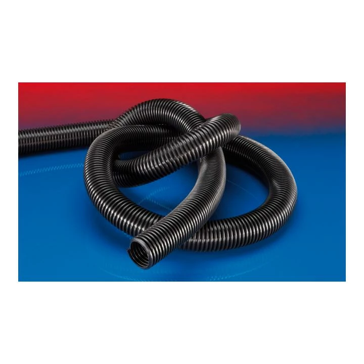 Antistatischer Saugschlauch; EVA <10¹¹ Ω, leicht, trittfest, geringes Gewicht nIndustriestaubsauger, Industriesauger, Staubsauger; SchwimmbadreinigungEigenschaften: Oberflächenwiderstand <10¹¹ Ω; überfahrbar + trittfest; schwimmfähig; geringes Gewicht; gute Laugen- und Säurenbeständigkeit nTemperaturbereich: -25°C bis 65°C n nKonstruktion, Werkstoff: selbsttragende Profilkonstruktion; offene Profilgeometrie; Wandung: EVA