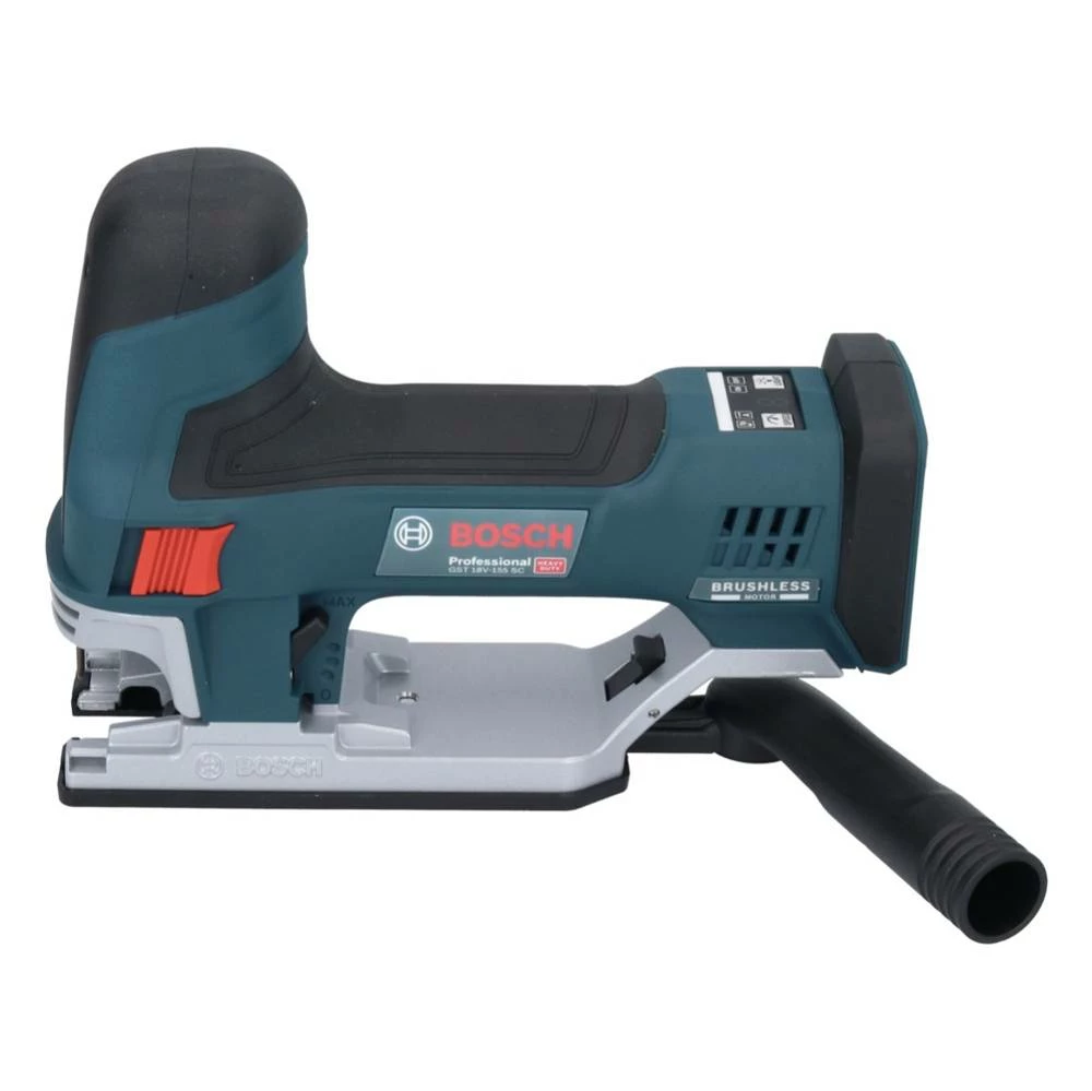 Die GST 18V-155 SC Professional bietet einen bürstenlosen Motor und ein gut ausbalanciertes Werkzeugdesign. Sie hat eine ergonomische Form, die eine 360°-Greifmöglichkeit ermöglicht, und einen beidseitigen Schalter, der Rechts- und Linkshändern eine perfekte Handhabung und Kontrolle beim Sägen – auch kopfüber – gewährleistet. Ihre Sägeblattführung vermeidet das Verbiegen des Sägeblatts sogar bei kleinen Kurven und ermöglicht eine präzise Arbeit. Sie ist mit einer externen Staubabsaugung kompatibel. Zudem verfügt sie über einen großen Sägeblattauswurfhebel und die Drop Control-Funktion, welche einen besseren Gesundheitsschutz und eine höhere Sicherheit für den Anwender gewährleisten. Die Stichsäge ist ideal für Rund- und Querschnitte in Massivholz, Spanplatten und Holzverbundwerkstoffen sowie in dickeren oder härteren Materialien. Sie ist über einen Adapter mit Führungsschienen kompatibel und selbstverständlich mit allen Bosch Professional 18V-Akkus und -Ladegeräten. Darüber hinaus verfügt es über eine robuste Aluminiumdruckguss Grundplatte mit zwei Befestigungspunkten für mehr Stabilität und Sicherheit. Die Adaptive Speed Control ( ASC ) unterstützt eine hohe Präzision bei Schnittbeginn, während das Connectivity Modul eine individuelle Einstellung von Drehzahl und Beleuchtung ermöglicht und wichtige Werkzeuginformationen liefert. Bosch ist ein Hersteller der für hohe Qualität und ein großes Akkusystem steht.