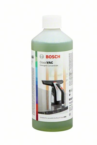 Systemzubehör GlassVAC Reinigungskonzentrat, 500 ml. Das GlassVAC Reinigungskonzentrat entfernt mit Leichtigkeit starke Verschmutzungen. Entfernt hartnäckigen Schmutz von allen Glasflächen und anderen glatten Flächen und sorgt im ganzen Haus für streifenfreie Flächen. Einfach mit dem GlassVAC einsprühen, hartnäckige Verschmutzungen entfernen und absaugen. Ideal zum Reinigen von Fenstern, Spiegeln, Fliesen und Duschen. Verwendung mit dem Bosch GlassVAC.