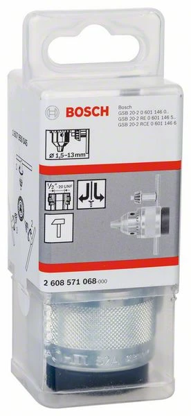 Bosch Zahnkranzbohrfutter Bis 13 Mm, Verchromt, 1,5 – 13 Mm, 1/2 Zoll – 20 (2 608 571 068)