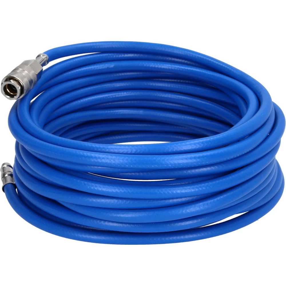 Der hochwertige BRILLIANT TOOLS Druckluftschlauch BT160005 dient als praktisches Zubehör und unterstützt den versierten Heimwerker sowie den Profi beim fachgerechten Arbeiten mit Druckluft. Der Schlauch wurde aus Polyethylen hergestellt und ist besonders langlebig und unempfindlich, auch bei niedrigen Temperaturen. Die Gesamtlänge liegt bei 10 Meter. Der Außendurchmesser beträgt 13 mm bei einem Innendurchmesser von 6 mm. Druckbeständigkeit des Schlauches besteht bei einem Arbeitsdruck von 1 bar – 15 bar. Der Schlauch wird mit montierten Schnellkupplungen geliefert.