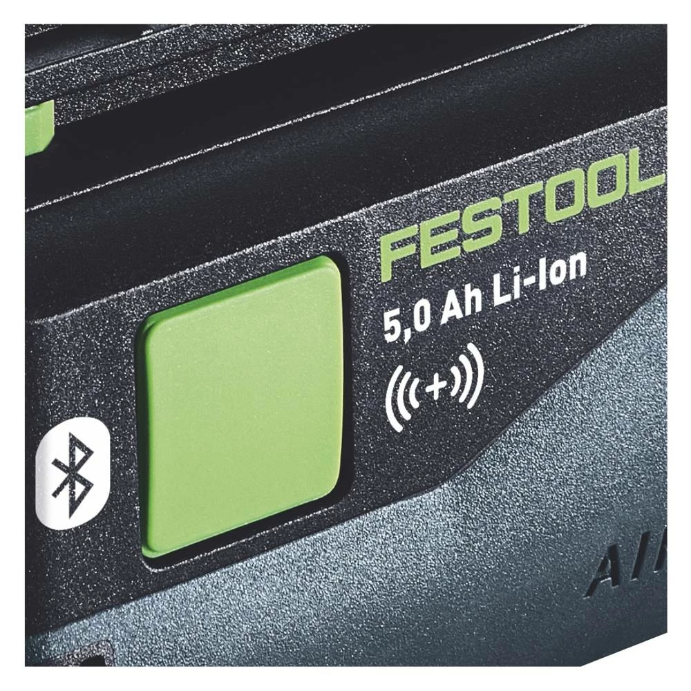 Das kraftvolle Festool BP 18 Li 5,0 Ah ASI Akkupack überzeugt durch eine optimale Ausdauer und Kraftentfaltung. Die Airstream-Technologie kühlt die Temperatur des Akkus und sorgt so für einen schnellen Wiedereinsatz des Akkus und eine deutlich höhere Ladeleistung. Weiterhin informiert die integrierte LED Anzeige jederzeit über die aktuelle Ladezeit des Akkupacks. In Kombination mit dem Bluetooth Modul am Cleantec Absaugmobil kommuniziert der Akku via Bluetooth Technologie mit dem Gerät und es wird ein automatisches Starten beim Einschalten des Akkuwerkzeugs ermöglicht. Außerdem kommuniziert der Akku über Bluetooth mit der Festool WorkApp und ermöglicht dadurch einige Zusatzfunktionen wie die detaillierte Ladestandsanzeige oder auch Temperatur und Ladezyklen. Außerdem lässt sich über die App per einfachen Klick der Akku mit niedrigsten Ladezustand aufblinken und einfach identifizieren. So profitieren Sie jetzt auch beim Arbeiten mit Festool Akkuprodukten vom gesamten Festool Staubfrei-System.