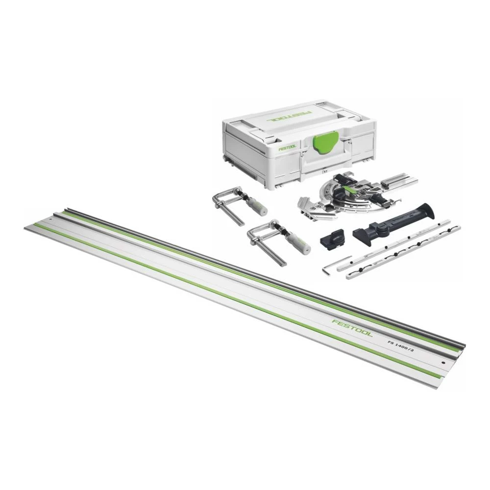 Festool bietet hier mit SYS3 M 137 FS/2 ein praktisches Zubehörset mit allen Hilfsmitteln um die Führungsschiene noch besser nutzen zu können. Mit dem FS-WA Winkelanschlag haben wir hier ein hochwertiges Werkzeug für genaueste Winkelschnitte im Bereich von +60º bis -60º. Der FS/2-AW ist lässt sich einfach auf eine Führungsschiene aufstecken und verhindert, dass sich Schläuche und Kabel verhaken. Durch die FSV/2 Verbindungsstücke lassen sich zwei Führungsschienen einfach und stabil miteinander verbinden. Die Schraubzwingen eignen sich hervorragend um die Führungsschienen an der Unterlage zu fixieren. Der FS-RSP Rückschlagstopp dient als hintere und vordere Stopp Position auf einer FS/2 Führungsschiene. Die Werkzeuge kommen in einem stabilen Systainer SYS3 M 137, welcher eine komfortable Transportmöglichkeit für das enthaltene Werkzeug bietet. Festool ist ein Premiumhersteller für Elektrowerkzeuge, der sich vor allem durch seine lange Tradition und seine sehr hohe Verarbeitungsqualität auszeichnet.