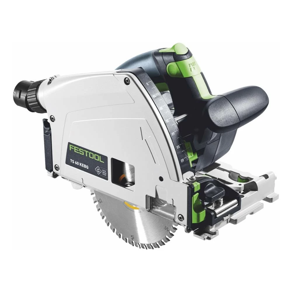 Die Festool Tauchsäge TS 60 K ist ideal für präzise Tauchschnitte bei einer Materialstärke von bis zu 60 mm und eignet sich so perfekt für das Ablängen von Innentüren, das Zuschneiden von Plattenmaterial, zum Herstellen von Dehnungsfugen in Parkettböden und Schattenfugen sowie das Zusägen und Bearbeiten von Gipsfaserplatten. Dank der erhöhten Schnitttiefe auf 60 mm, können mit Ihr auch Werkstoffplatten bis zu einer maximalen Dicke von 45 mm auf Gehrung ( 45° ) geschnitten werden. Zusätzlich neu ist der einzigartige KickbackStop. Dieser vermindert die Verletzungsgefahr durch einen Rückschlag beim Sägen oder beim Eintauchen in das Werkstück. Mit dem transparenten und verschiebbaren Sichtfenster haben Sie stets gute Sicht auf Anriss und Sägeblatt. Die neuverbaute Regelelektronik ermöglicht die Drehzahlregelung für Temperaturüberwachung, Schnellbremse und gewährleistet so eine optimale Anpassung an den Werkstoff. Dank des FastFix Spindelstopp ist der Sägeblattwechsel ganz einfach. Mit wenigen Handgriffen ist das richtige Sägeblatt montiert und die passende Drehzahleinstellung für materialgerechtes Sägen vorgenommen, wodurch immer materialgerecht arbeiten garantiert ist. Das flache Gehäuse bietet beim Arbeiten höchste Flexibilität bei einer Winkeleinstellung mit Hinterschnitt-Funktion von -1 bis 47°. Der neue Systainer SYS3 M 337 mit bewährter Grundfläche ist die Säge mit Zubehör sicher und mobil gelagert – jetzt auch mit Kompatibilität zum bott vario3 Fahrzeugeinrichtung. Festool ist Premium Werkzeughersteller der sich vor allem durch seine ausgeklügelten Systeme und seine hohe Verarbeitungsqualität auszeichnet.