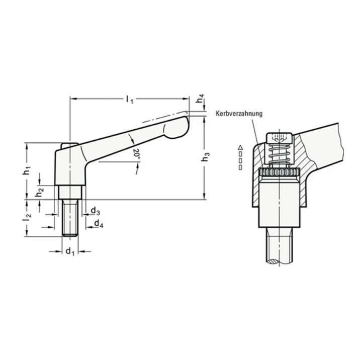 Ganter Verstellbarer Klemmhebel GN 300 D1 M 16mm L1 108mm IG