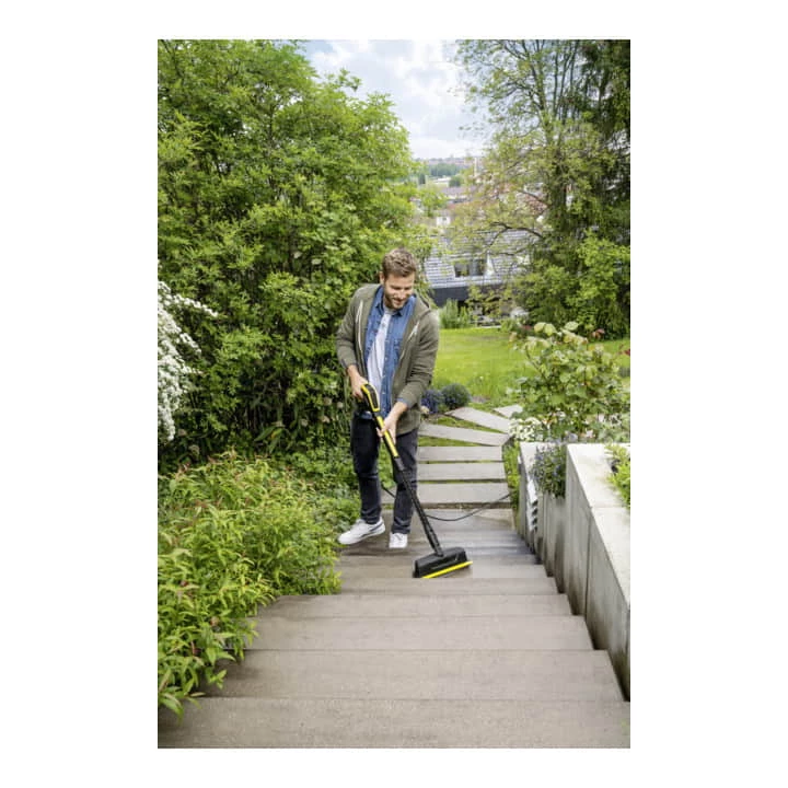 - Diese Kombination aus Hochdruckstrahl und manuellem Bürstendruck stellt mit seiner Reinigungsleistung jeden herkömmlichen Schrubber in die Ecke und kann mit allen Kärcher Hochdruckreinigern der Klassen K 2 bis K 7 kombiniert werden