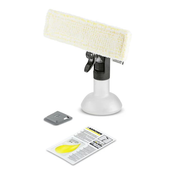 - Sprühflaschen-Set für Kärcher Fenstersauger bestehend aus Sprühflasche, Wischeraufsatz, Mikrofaserbezug und 20 ml Fensterreinigungskonzentrat