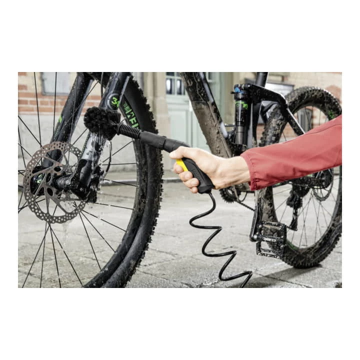 - Die an der Pistole anschließbare Universalbürste löst hartnäckigen Schmutz mit weichen Bürsten und schwemmt ihn weg