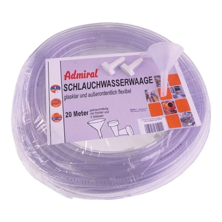 Klotz Schlauchwasserwaage L.20m Schlauch-D.8mm Wandstärke 1,2mm M.Stöpsel U.Trichter
