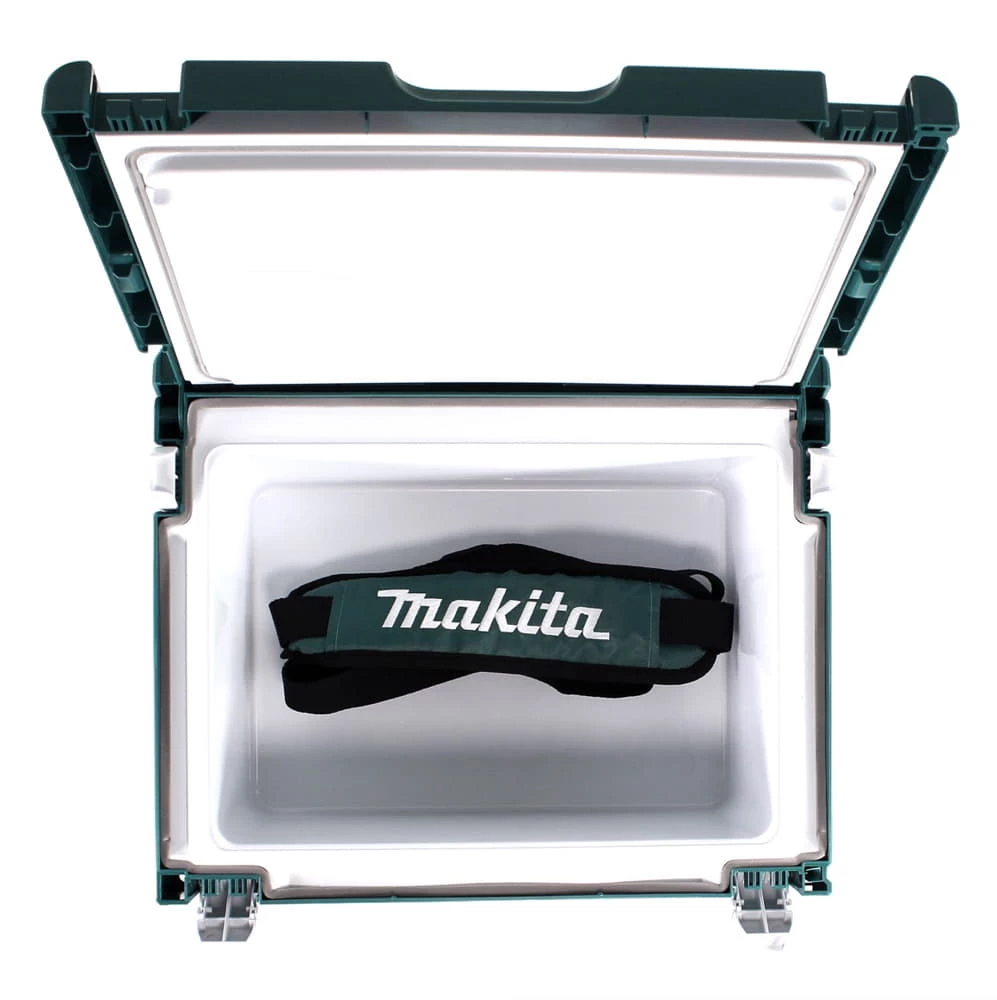 Diese praktische Kühlbox aus dem Hause Makita ist ein Makpac Koffer Größe 3 und somit mit allen Makpacs kompatibel. Die Koffer lassen sich bequem stapeln, festklicken und einfach transportieren. Die Konstruktion des Makita Makpacs besteht aus doppelwandigen Eckprofilen und verstärkten Deckel-, Seiten- und Bodenflächen. Des Weiteren erhöhen abgerundete Gehäuse- und Griffkanten den Benutzer- und Tragekomfort. Diese Box hat eine Isoliereinlage, sodass zum Beispiel Getränke kühl gehalten werden können. Ein Stecker für elektrische Kühlung ist nicht vorhanden. So ist diese Box perfekt für heiße Sommertage geeignet, wenn keine Steckdose in der Nähe ist. Sie hat ein Volumen von 11 Litern. Durch den mitgelieferten Tragegurt lässt sie sich zudem gut transportieren.