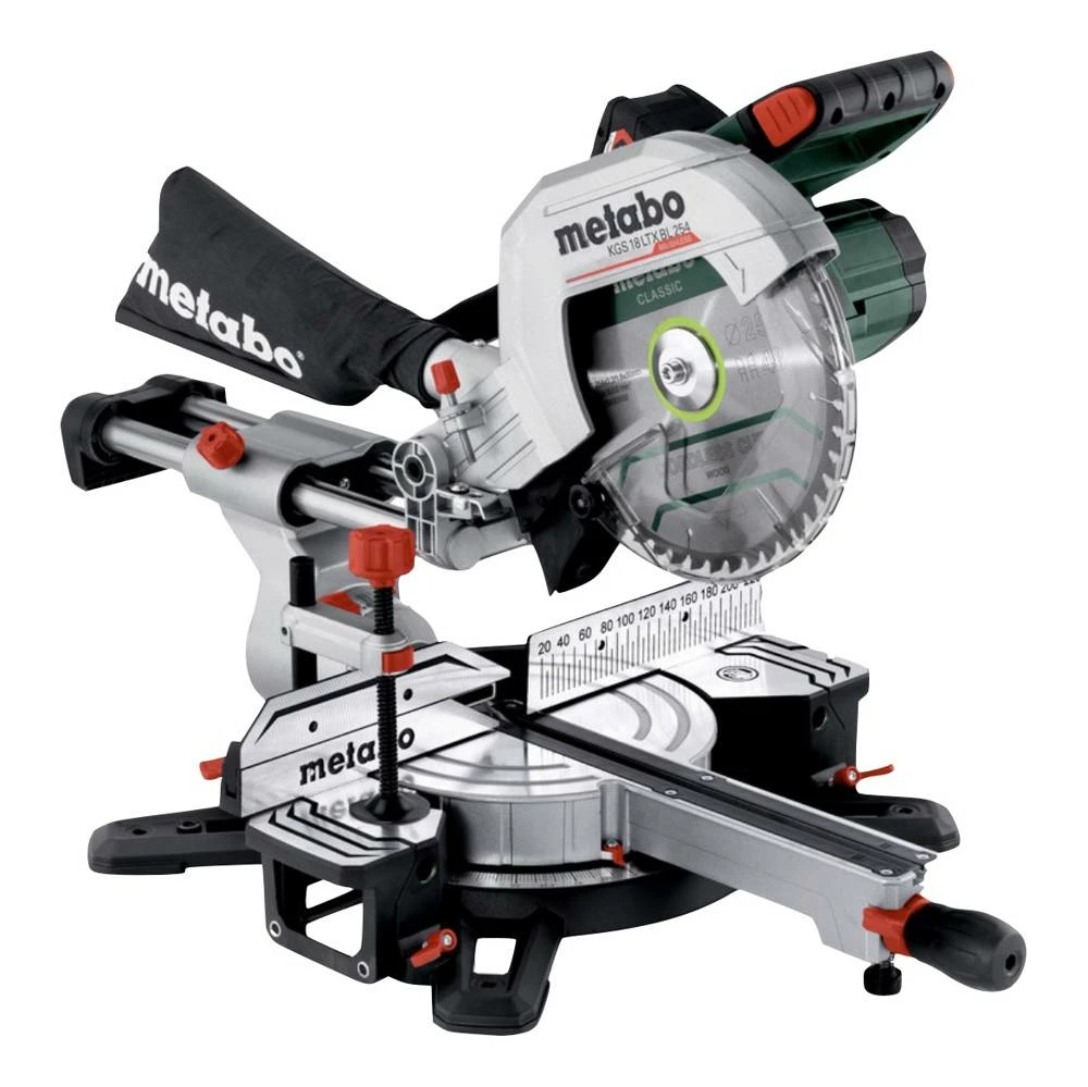 Die Metabo KGS 18 LTX BL 254 ist eine kompakte, leichte und präzise Akku-Kapp- und Gehrungssäge der mobilen M-Klasse. Mit ihrem leistungsstarken Brushless-Motor ermöglicht sie kraftvolles Sägen wie mit einer Netzmaschine. Mit einer Akkuladung (LiHD 10 Ah) können bis zu 205 Schnitte in Weichholz 80 x 80 mm durchgeführt werden. Sie verfügt über die Precision Cut Line (PCL), die eine exakte Schatten-Schnittlinie ohne Nachjustieren ermöglicht. Die LED ist clever platziert und sorgt so für eine optimale Sicht auf die Schnittlinie. Durch die Zugfunktion können auch breite Werkstücke problemlos bearbeitet werden. Der Drehteller der Säge ermöglicht eine schnelle und präzise Einstellung gängiger Winkel über Rastpunkte. Zudem ist die Sägeblattneigung von -2 bis 47° verstellbar, wodurch auch Hinterschnitte möglich sind. Die robuste Bauweise aus Aluminiumdruckguss sorgt für eine hohe Stabilität und Langlebigkeit der Säge. Die KGS 18 LTX BL 216 verfügt außerdem über eine effektive Spanabsaugung, die über einen integrierten Spänefangtrichter erfolgt. Ein Sanftanlauf und Überlastschutz sorgen für eine lange Lebensdauer von Motor und Getriebe. Die ausziehbaren Tischverbreiterungen können auch abgenommen werden, um extrem lange Werkstücke zu bearbeiten. Mit Hilfe der Schnellspannzwinge kann das Werkstück sicher von oben oder von vorne fixiert werden. Der Tiefenanschlag ermöglicht zudem die einfache Herstellung von Nuten. Alle Skalen und Bedienelemente sind aus der Arbeitsposition einsehbar und intuitiv bedienbar. Ergonomische Griffbereiche ermöglichen ein- oder beidhändiges Tragen. Die KGS 18 LTX BL 216 ist kompatibel mit allen 18V-Akkupacks und Ladegeräten der CAS Marken. Das bedeutet, dass sie mit vielen Marken kombinierbar ist und somit flexibel eingesetzt werden kann.