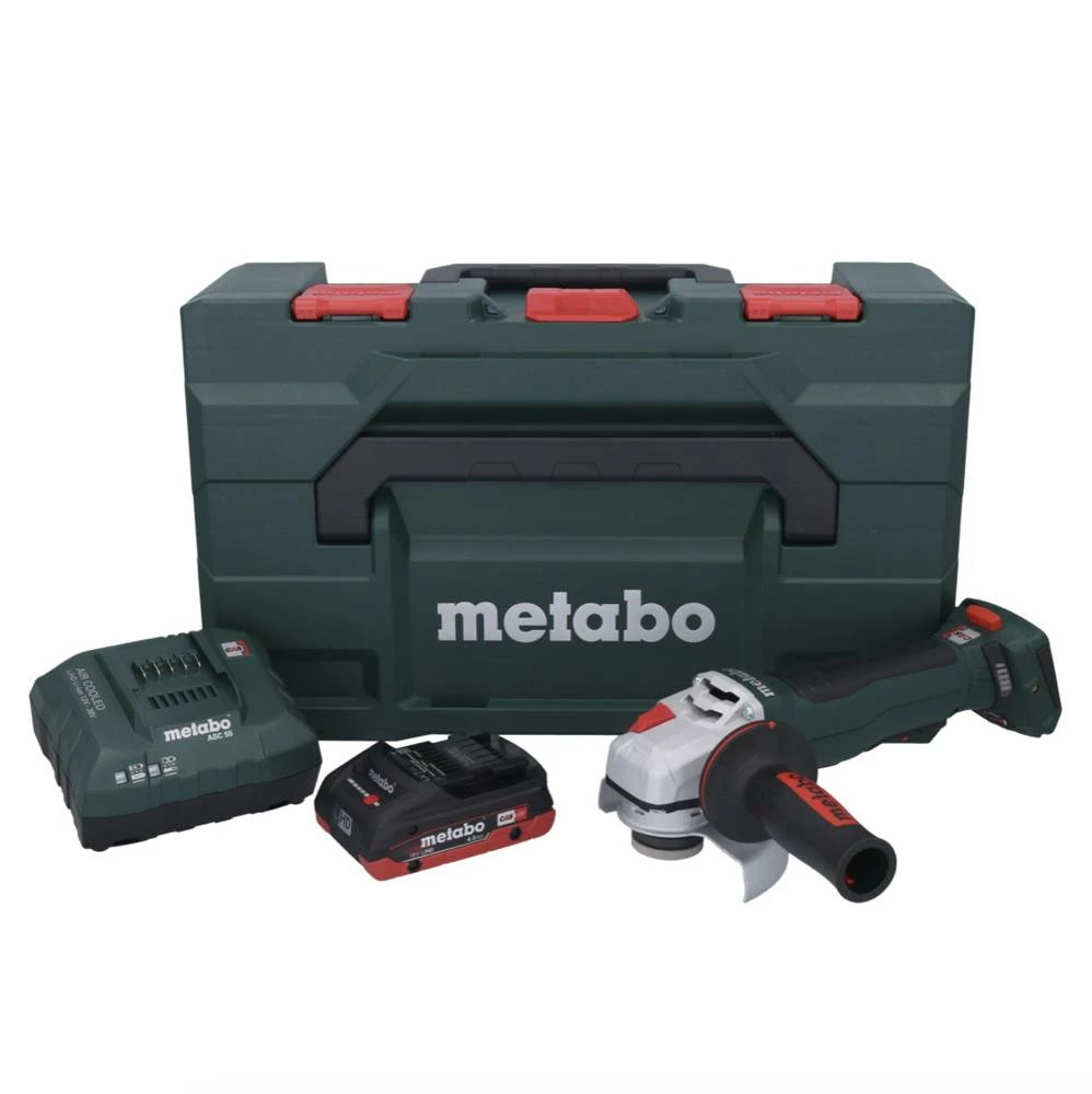 Der Bürstenlose Akku-Winkelschleifer der neuen Generation von Metabo ist der stärkste seiner Klasse und so stark wie ein 1100-Watt-Netzgerät. Dank seines Servicefreien Brushless Motors bietet er höchste Effizienz bei maximaler Handlichkeit. Ein schnelles Bremssystem sorgt für höchsten Anwenderschutz, indem die Scheibe binnen 1 Sekunden nach dem Ausschalten stoppt. Mit dem M-Quick-System können Sie den Scheibenwechsel werkzeuglos auf Knopfdruck vornehmen. Die werkzeuglos verstellbare Schutzhaube ist verdrehsicher fixierbar und der Akkupack ist in 90°-Grad-Schritten drehbar, um beste Ergonomie in jeder Arbeitsposition zu gewährleisten. Die Metabo S-automatic mechanische Sicherheitskupplung minimiert Kick-Back beim Blockieren der Scheibe auf das am Markt niedrigste Niveau, was für maximalen Anwenderschutz sorgt. Außerdem verfügt der Akku-Winkelschleifer über einen elektronischen Überlastschutz, Sanftanlauf und Wiederanlaufschutz sowie einen abnehmbaren Staubschutzfilter als Motorschutz vor groben Partikeln. Mit dem Bürstenlosen Akku-Winkelschleifer der neuen Generation von Metabo erhalten Sie den stärksten Schleifer seiner Klasse und profitieren von höchster Effizienz und maximaler Handlichkeit. Er ist mit allen 18V-Akkupacks und Ladegeräten der CAS Marken kombinierbar.