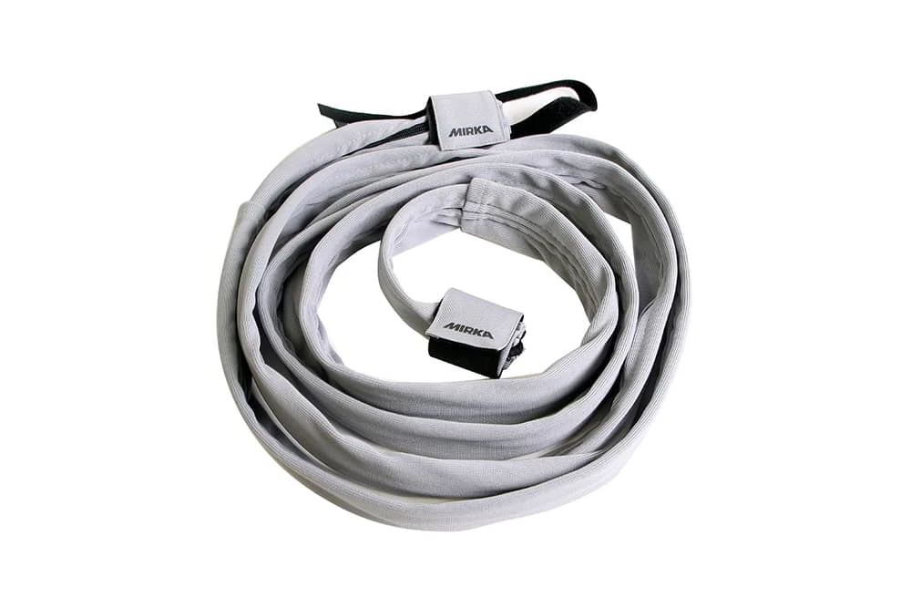 Langlebige Manschette 3,8 m, für den Einsatz mit Mirka® DEROS, Mirka® LEROS und Mirka® DEOS Standardschlauch (MIN6519411) und 4,3 m Kabel. Die Manschette kombiniert den Schlauch und das Kabel und macht nicht nur die Handhabung einfacher, sondern verhindert Kratzer auf der Oberfläche.