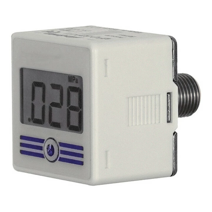 - Digital-Manometer in stabilem Kunststoffgehäuse zur Überwachung und Messung von Drücken in trockener, ölfreier Druckluft und ungiftigen, nicht aggressiven Gasen