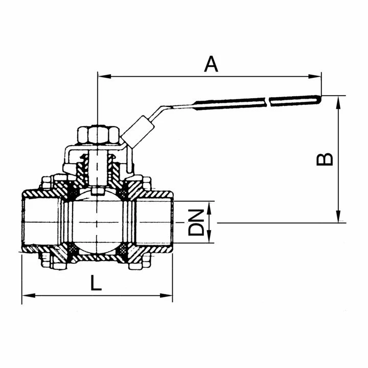 - Edelstahlkugelhahn, 3-teilig, Baulänge nach DIN 3202-M3, G 1, DN 25, Betriebstemperatur -20 °C bis 180 °C, PN max. 63 bar