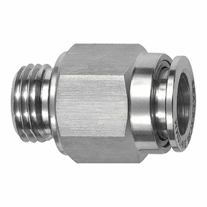 - Gerade Steckverschraubung, Außensechskant, G 1/2 a., für Schlauch-Außen-Ø 12 mm, Arbeitsdruck max. 20 bar, Edelstahl 1.4404. Für den Einsatz in aggressiveren Umgebungen und bei korrosiven Medien