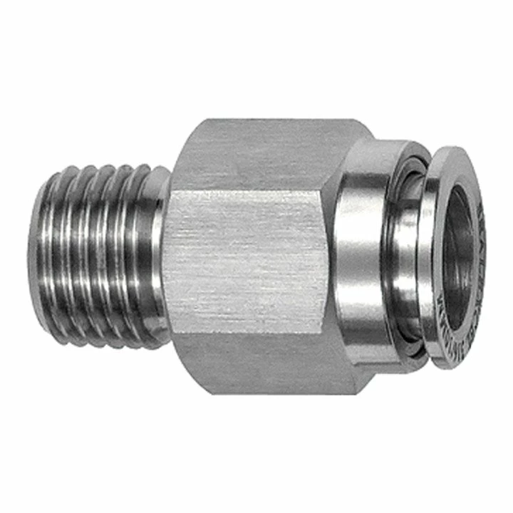 - Gerade Steckverschraubung, Außensechskant, R 1/4 a., für Schlauch-Außen-Ø 10 mm, Arbeitsdruck max. 20 bar, Edelstahl 1.4404. Für den Einsatz in aggressiveren Umgebungen und bei korrosiven Medien