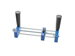 Große Handgriffe sorgen für Bedienkomfort und gute Gerätekontrolle. An den Zwingenflächen lassen sich zusätzlich Verschleißstücke (nicht im Lieferumfang enthalten) befestigen. Rutscharme Zwingenseiten verhindern ein Verrutschen des Werkstücks. Max. Spannweite: 214 mm. Beim Einsatz am Frästisch Fräser mit Anlaufring verwenden.