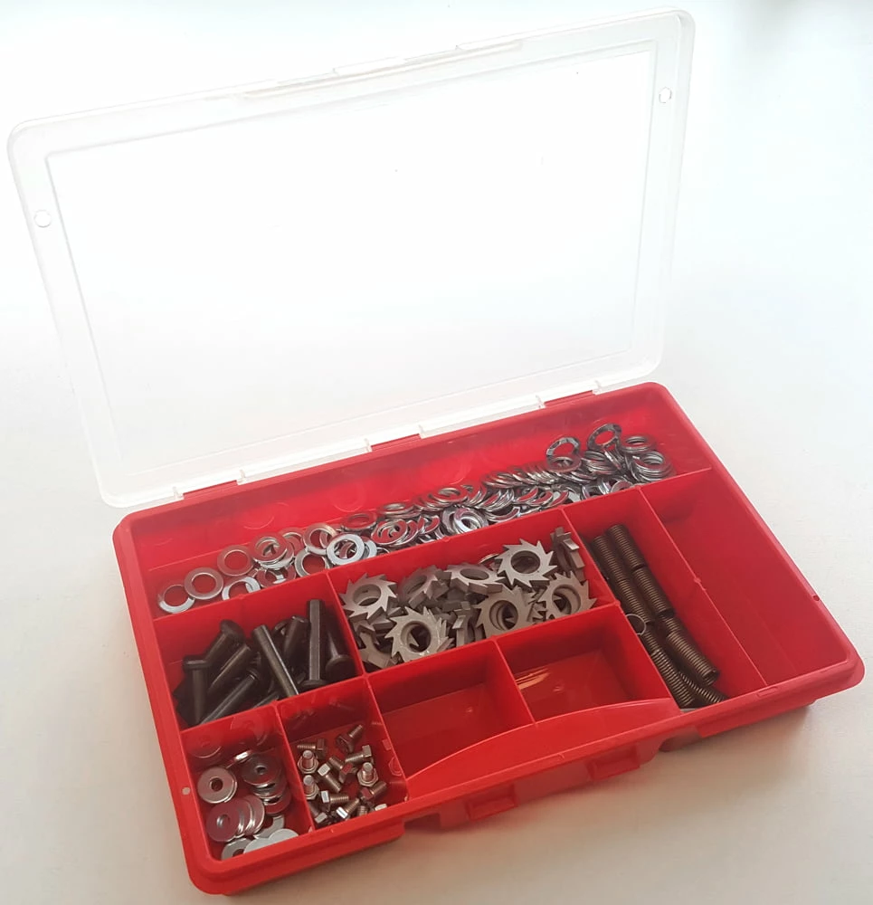 | Lieferumfang | 15x Bolze15x Feder15x Schraube15x Sicherungsring45x Fräser |