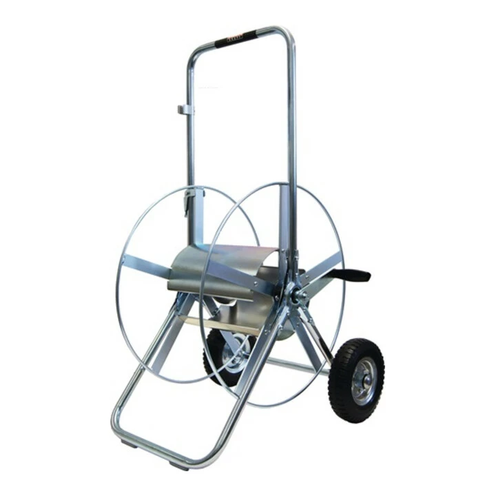 extrem stabile Ganzstahlkonstruktion galvanisch verzinkt (Chrom 6 frei) · doppelt gelagert · schlauchschonende Trommel mit rostfreiem Anschlussbogen: kein Schlauchknicken · hoher Wasserdurchfluss 3/4″ · Dreharmatur kugelgelagert · durchgängig und druckbeständig · Schlauchtrommel und Handkurbel im Stahllager · mit Haspelblockierung · Ø 21,5 cm PU Räder mit Stahlfelgen Weitere technische Eigenschaften: · Gewicht: 14kg