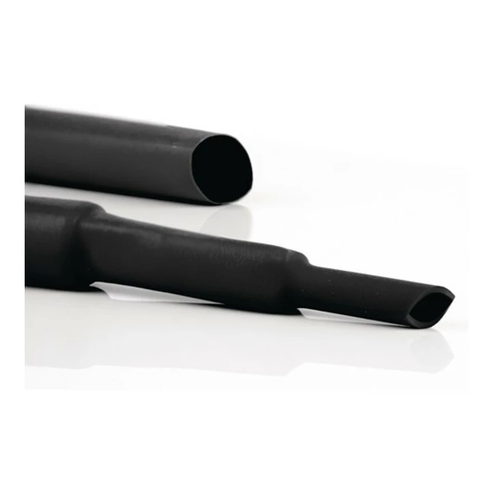 doppelwandiger Wärmeschrumpfschlauch mit Kleberbeschichtung mit einer Schrumpfrate von 3:1 · exzellente Abdichtungs- und Isolationseigenschaften · UV-beständig · Als Stange in 1,22 m Länge · schwarz · Betriebstemperatur von -55°C bis +125°C · min. Schrumpftemperatur +70°C · Mindesttemperatur zur vollständigen Schrumpfung +110°C · flammwidrig · Freigaben: UL224 125°C VW-1 600 V file E204071 · erfüllt RoHS und SAE-AMS-DTL-23053/4
