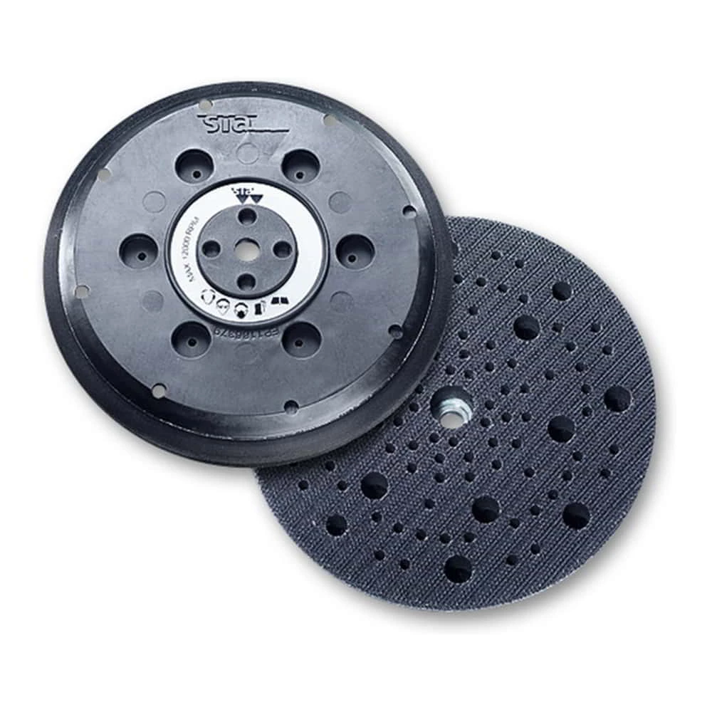 Eigenschaften:Stützteller für Multi-Loch und netzähnliche siafast SchleifscheibenAuch geeignet für den Einsatz mit 6-, 7-, 9- und 15-Loch-Scheiben; Beim Einsatz des Exzenterschleifers ist je nach Anwendung darauf zu achten, dass der dafür geeignete Stützteller eingesetzt wird; Für den Lackzwischenschliff empfiehlt sich der weiche oder extra weiche Stützteller; Um staubfrei arbeiten zu können, empfehlen wir den Einsatz einer leistungsfähigen StaubabsaugungVorteile: Die 103-Lochung garantiert vollflächige Absaugung; Neuer, hitzebeständiger Klett sorgt für eine verbesserte Absaugung und höhere Standzeit; Vibrationsarm dank abgestimmtem Tellergewicht; In weich, extraweich und hart lieferbarEinsatz: Grobschliff, Feinschliff und MicrofinishingLieferumfang: Montageset inklusive Festool-Adapter und Distanzscheiben (Schrauben 5/16“ + M8); Montageanleitung in verschiedenen Sprachen