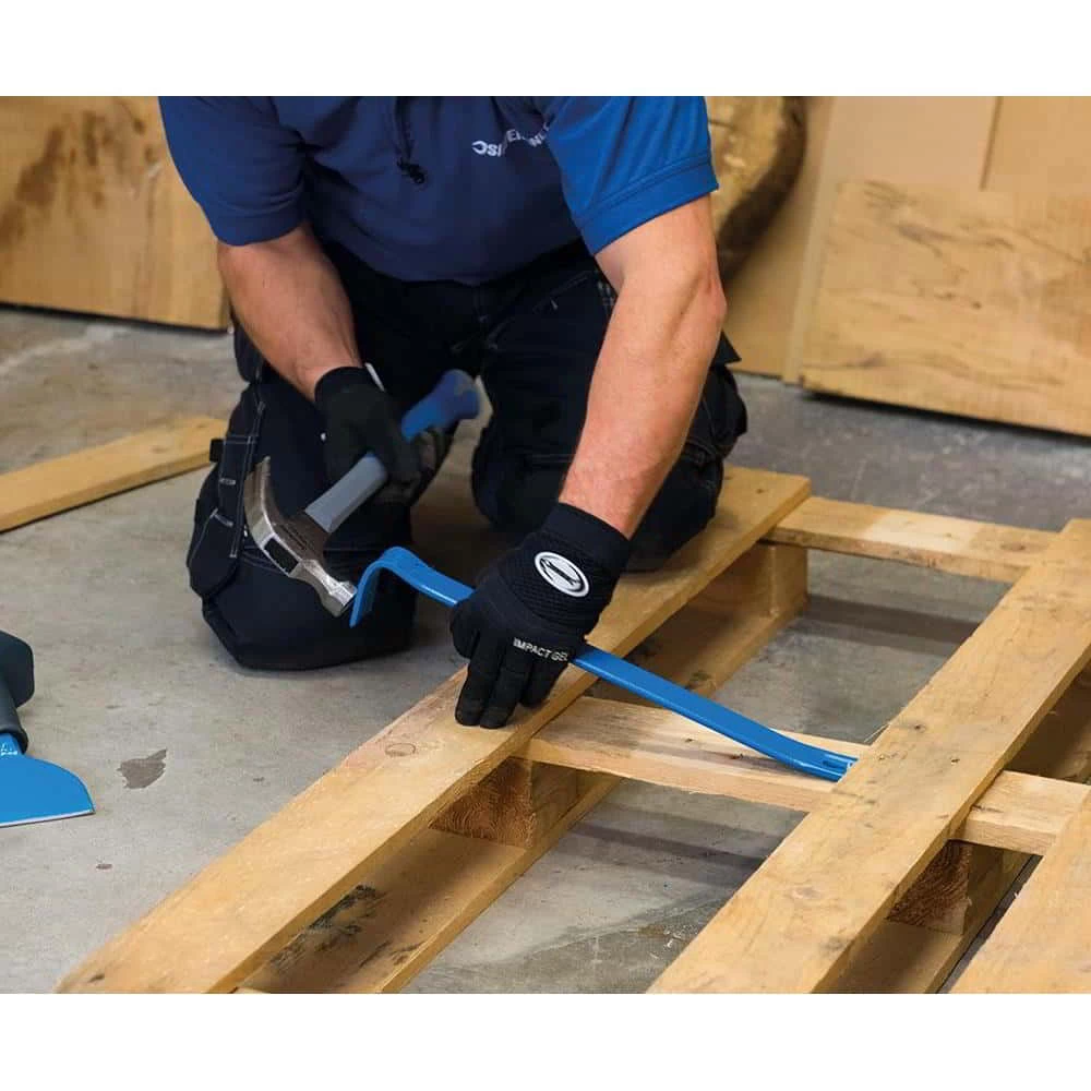 Geschmiedeter und vergüteter ovaler Kohlenstoffstahl. Mit pulverbeschichteter Klaue und Meißel. Für allgemeine Abrissarbeiten. Abgewinkeltes Meißelende für kraftvolle Hebelkraft. Klaue mit integriertem Nageleisen.