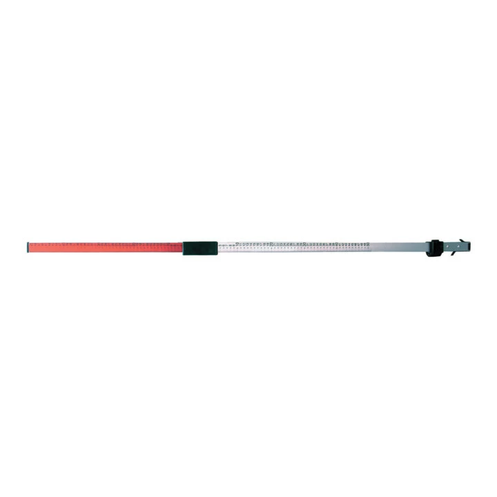 - Höhenverstellbare, stabile Aluminium-Messlatte mit integrierter Dosenlibelle zum Ausrichten
