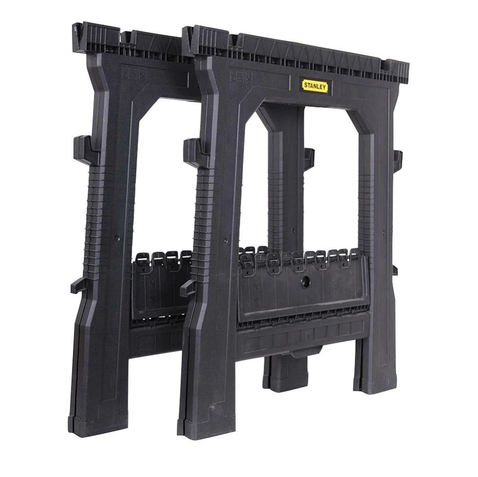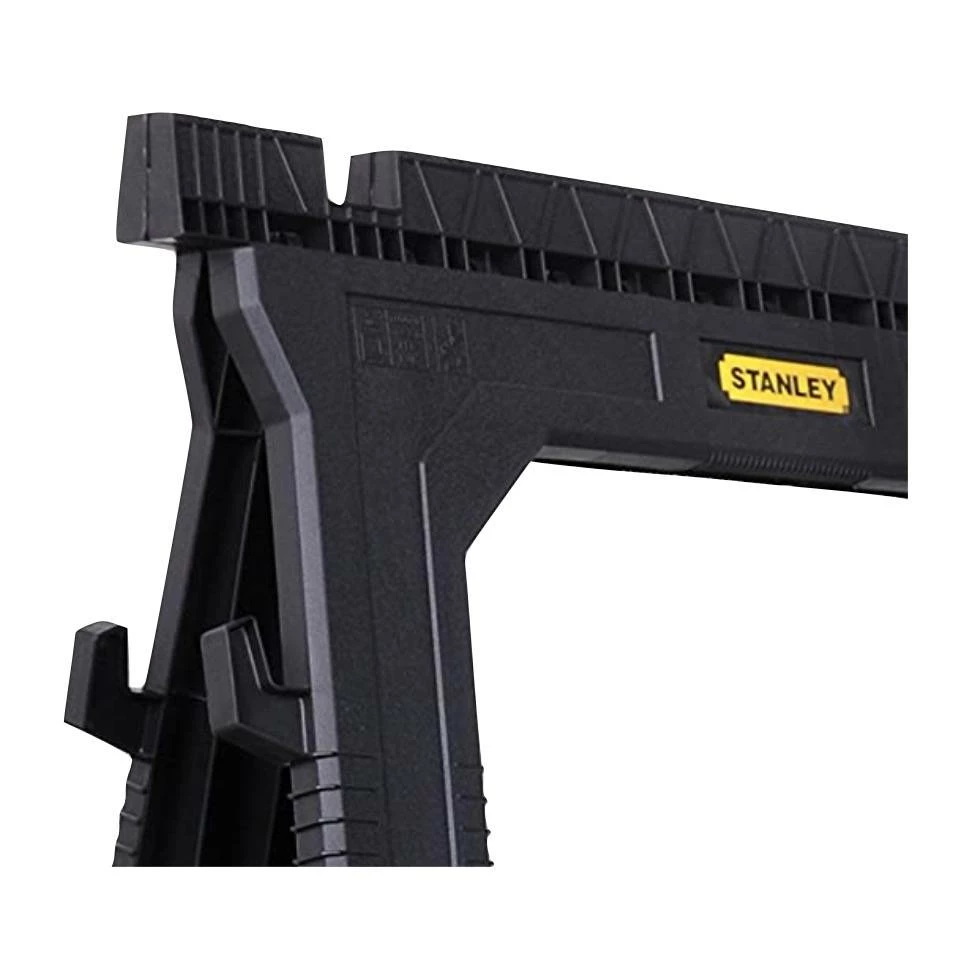 Stanley bietet hier ein Unterstellbock Paar für große Belastung mit bis zu 450 kg. Durch die gummierten Füße wird ein verrutschen der Böcke verhindert und die Kabelhalterung an beiden Seiten sorgt für Bewegungsfreiheit beim Arbeiten. Stanley ist ein führender Hersteller für Werkzeuge aller Art und zeichnet sich vor allem durch seine lange Tradition und seine hohe Verarbeitungsqualität aus.