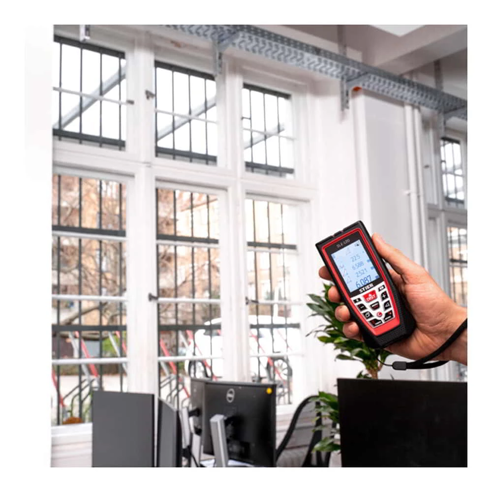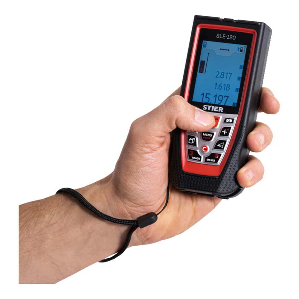 Der STIER SLE 120 ist ein professioneller Laserentfernungsmesser und überzeugt durch eine ausgezeichnete Leistung im Außenbereich, sowie einen besseren Staub-, Wasser- und Fallschutz. Durch seine hohe Reichweite ist ein einfaches Anzielen weit entfernter Objekte problemlos möglich.Eigenschaften:Mess-Reichweite von bis zu 120 Metern, damit auch für große Werkstücke geeignet und auf weitläufigen Baustellen einsetzbarDer SLE-120 verfügt über ein benutzerfreundliches Interface. Mit nur wenigen Klicks kann so zwischen den verschiedenen Funktionen gewechselt werdenFür die unterschiedlichsten Anwendungsfälle kann zwischen drei Messebenen unterschieden werden: Vorderkante, Stativ, HinterkanteDie Anwendungsbereiche werden durch ein ausklappbares Endstück zusätzlich erweitertTimer FunktionSpeicher mit bis zu 50 gemessenen WertenDigitale WasserwaageAnwendungsgebiete:EinzelmessungenDauermessungen / TrackingDigitale Zielsuche mit digitalem Zoom für weit entfernte Objekte oder WändeAddieren / Subtrahieren von MesswertenFlächenberechnungenVolumenberechnungen (Raumvolumen, Raumfläche, Wandfläche, Raumumfang)Dreiecks- und TrapezflächeBestimmen einer horizontalen Strecke mit einer NeigungsmessungLieferumfang:1 x STIER Laser-Entfernungsmesser SLE-1201 x Schutztasche mit Hand-/Gurtschlaufe3 x 1,2V 800mah Ni-mH Akku1 x USB-LadekabelBedienungsanleitungSTIER-Produkte werden von Profis aus Handwerk und Industrie entwickelt und verbinden in höchstem Maße Leistungsstärke und Ergonomie. Kraftvoll. Widerstandsfähig. Langlebig. Tausende Kunden vertrauen dem besten Preis-Leistungs-Verhältnis. Erlebe auch du die STIER Produktpalette auf unserer Markenseite.