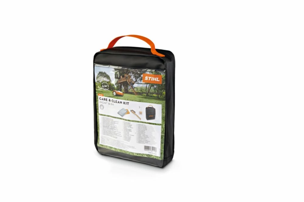 Das Care & Clean Kit ist ideal, wenn Sie als Besitzer eines iMOW® Mähroboters oder eines STIHL Rasenmähers Wert auf eine einfache und effektive Reinigung legen. Durch die regelmäßige Pflege von Gehäuse, Mähwerk und der iMOW® Dockingstation unterstützen Sie die lange Lebensdauer und Leistungsfähigkeit dieser Geräte. Das STIHL Care & Clean Kit enthält alle für die Reinigung und Pflege notwendigen Komponenten: * 500 ml STIHL Multiclean * Reinigungsbürste mit Schaber * 2 x Mikrofasertuch * eine Transporttasche STIHL Multiclean ist ein speziell entwickeltes, schonendes Universal-Reinigungsmittel, mit dem Sie alle Oberflächen aus Kunststoff, Metall, Gummi oder auch Lack schnell und effektiv reinigen können. Es ist pH-neutral, NTA-frei, entfernt selbst hartnäckige Verschmutzungen gründlich und ist dabei schonend zur jeweiligen Oberfläche. So entfernen Sie sowohl organische Verschmutzungen wie z.B. Pflanzenreste, Pollen oder Insekten als auch atmosphärische Verunreinigungen einfach und effizient. Mit Hilfe der STIHL Reinigungsbürste mit Schaber können Sie gröbere Verschmutzungen lösen. Anschließend sprühen Sie das Mähwerk direkt mit STIHL Multiclean ein. Für das Gehäuse oder die Dockingstation benutzen Sie optimalerweise das eingesprühte STIHL Mikrofasertuch. Gelösten Schmutz und Reste des Reinigers können Sie anschließend einfach mit einem feuchten Tuch entfernen. Für die Reinigung empfehlen wir das Tragen von Arbeits- oder Schutzhandschuhen.