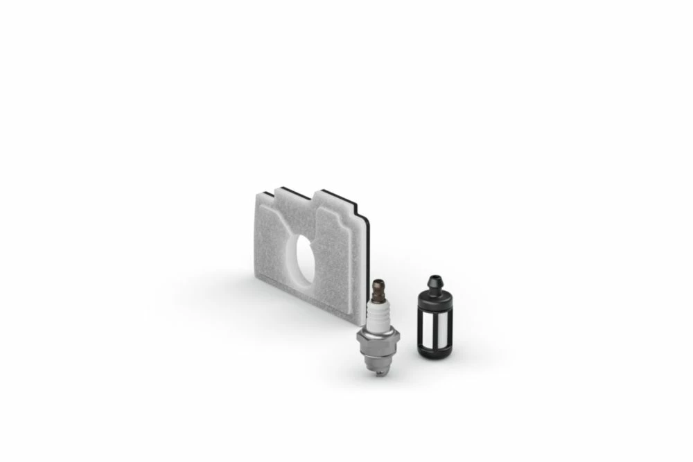 Mit dem Service Kit 7 für STIHL Benzin‑Motorsägen können Sie einfache Wartungsarbeiten an Ihrer Kettensäge selbst durchführen. Durch diese proaktiven und regelmäßigen Standard-Wartungen, wie den Tausch von Luft- und Kraftstofffilter sowie der Zündkerze, erhöhen Sie die Lebensdauer Ihrer Motorsäge. So tragen Sie selbst dazu bei, dass Maschinenkomponenten und Bauteile vor Schmutz und Beschädigung geschützt werden und der Motor Ihrer Kettensäge stets zuverlässig und mit optimaler Leistung arbeitet. Im STIHL Service Kit 7 für MS 170 (nicht 2-Mix) (Maschinennummer > 502696762 > 806742307) und MS 180 (nicht 2-Mix) (Maschinennummer > 507033949 > 808412503) erhalten Sie folgende Komponenten für eine Standard-Wartung: * Vliesluftfilter * Zündkerze * Kraftstofffilter Der STIHL Vliesfilter bietet eine gute Filterqualität bei unterschiedlichen Einsatzbedingungen. Bereits an der Oberfläche werden grobe Schmutzpartikel abgefangen, während die feinen Schmutzpartikel im Filterinneren zurückgehalten werden. So wird der Motor der Kettensäge zuverlässig vor dem Eindringen von abrasivem Staub geschützt. Die Leistung bleibt erhalten, der Verbrauch niedrig und Sie können Ihre Maschine weiterhin gewohnt einfach starten. Für den Leistungserhalt ist es zudem empfehlenswert, regelmäßig die Zündkerze auszutauschen. Diese ist die Grundlage für eine saubere Verbrennung im Motor. Der Kraftstofffilter hält den Kraftstoff frei von Fremdpartikeln, bevor dieser in den Motor gelangt. So schützt er den Motor und sorgt für eine verbesserte Langlebigkeit. Auch dieser muss regelmäßig ausgewechselt werden, um zuverlässig zu funktionieren. Für den Austausch von Luftfilter und Zündkerze verwenden Sie am besten den praktischen Kombischlüssel, den Sie bereits mit Ihrer STIHL Motorsäge erhalten haben. In der Verpackung des Service Kits selbst ist ein Kartonhaken integriert. Damit können Sie den Kraftstofffilter bequem entnehmen und tauschen. Sie benötigen kein zusätzliches Werkzeug.