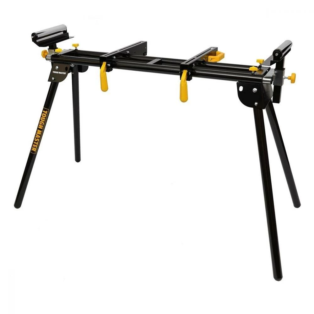Der Gehrüngssägenständer TM-MS200U von TOUGH MASTER lohnt sich für jeden, der seine Gehrungssäge regelmäßig und auf wechselnden Baustellen einsetzt. Der Gehrungssägenständer überzeugt durch seinen robusten Stahl, die robuste Stahlkonstruktion und die stabilen Beschläge, welche einen zuverlässigen Gebrauch und eine lange zuverlässige Lebensdauer gewährleistet. Darüber hinaus gestaltet sich die Montage sehr einfach. Dafür müssen Sie ausschließlich die Beine des Ständers ausklappen und die Säge montieren und schon können Sie loslegen. Der mobile Gehrungssägeständer verfügt über Teleskoparme, welche es im ausgefahrenen Zustand erlauben, ein 3 Meter langes Werkstück zu tragen. Des Weiteren besitzt der Ständer Endanschläge, welche sich einfach einstellen lassen und bei der Verwendung schnelle Wiederholungsschnitte ermöglichen. Dazu kommt das relativ geringe Gewicht von 13,5 kg und die klappbaren Füße, welche den Ständer kompakt halten und den leichten Transport auf der Baustelle garantieren. Weitere praktische Funktionen bieten die höhenverstellbaren Rollen, denn mit Ihnen lässt sich die Höhe Ihres Werkstücks sicher und zuverlässig für präzises und genaue Schnitte einstellen. Noch interessant zu erwähnen ist, dass der Gehrungssägenständer über Montagehalterungen mit Schnellverschlussgriffen verfügt, die ein einfaches & schnelles Anbringen und Entfernen der Gehrungssäge ermöglichen. Dieser Gehrungssägenständer ist mit den meisten Gehrungssägen kompatibel und die integrierten Schnellspannhebel ermöglichen eine schnelle Verstellung. Wenn Sie also einen Gehrungssägenständer zum Schneiden von Sockelleisten oder ähnlichen Artikeln benötigen, ist dieser Gehrungssägenständer von TOUGH MASTER eine gute Wahl.